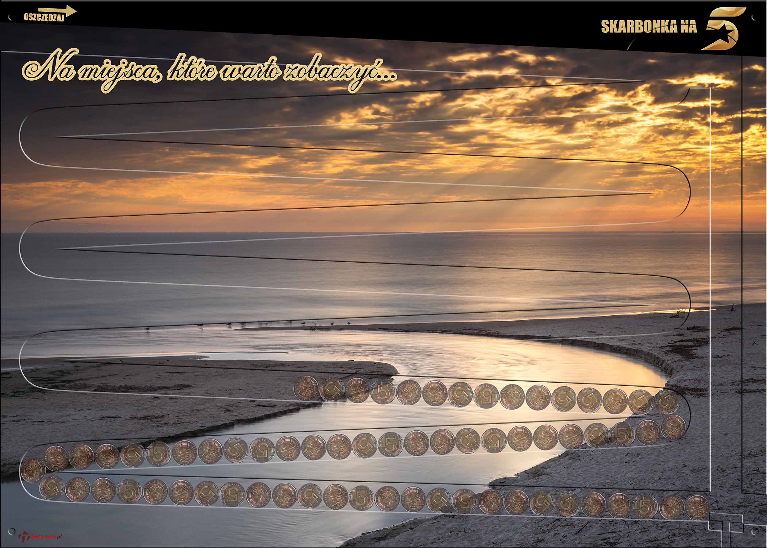 SKARBONKA NA 5 zł - XXL ścienna 70x50 cm BAŁTYK DĘBKI - 1000 zł