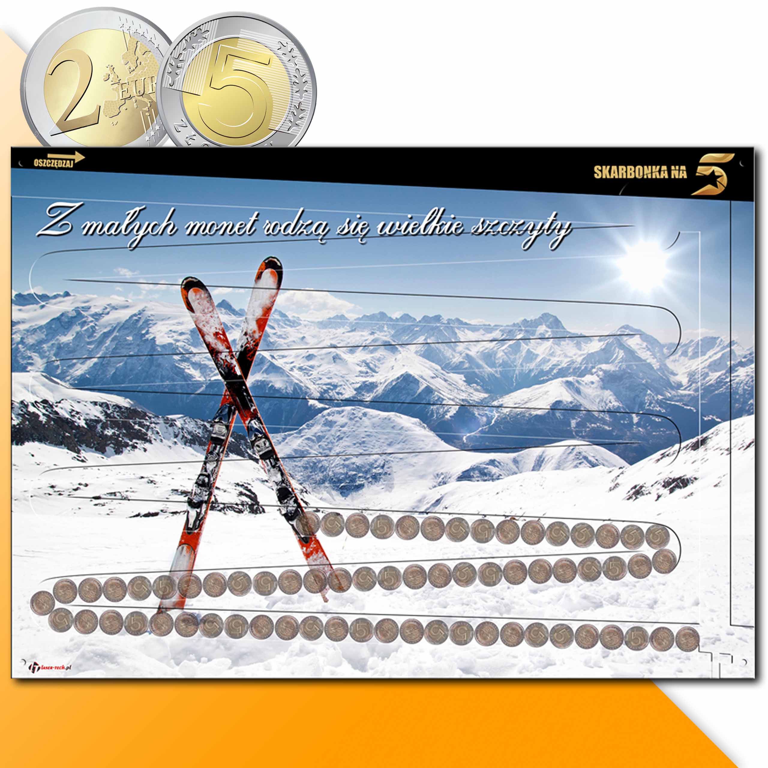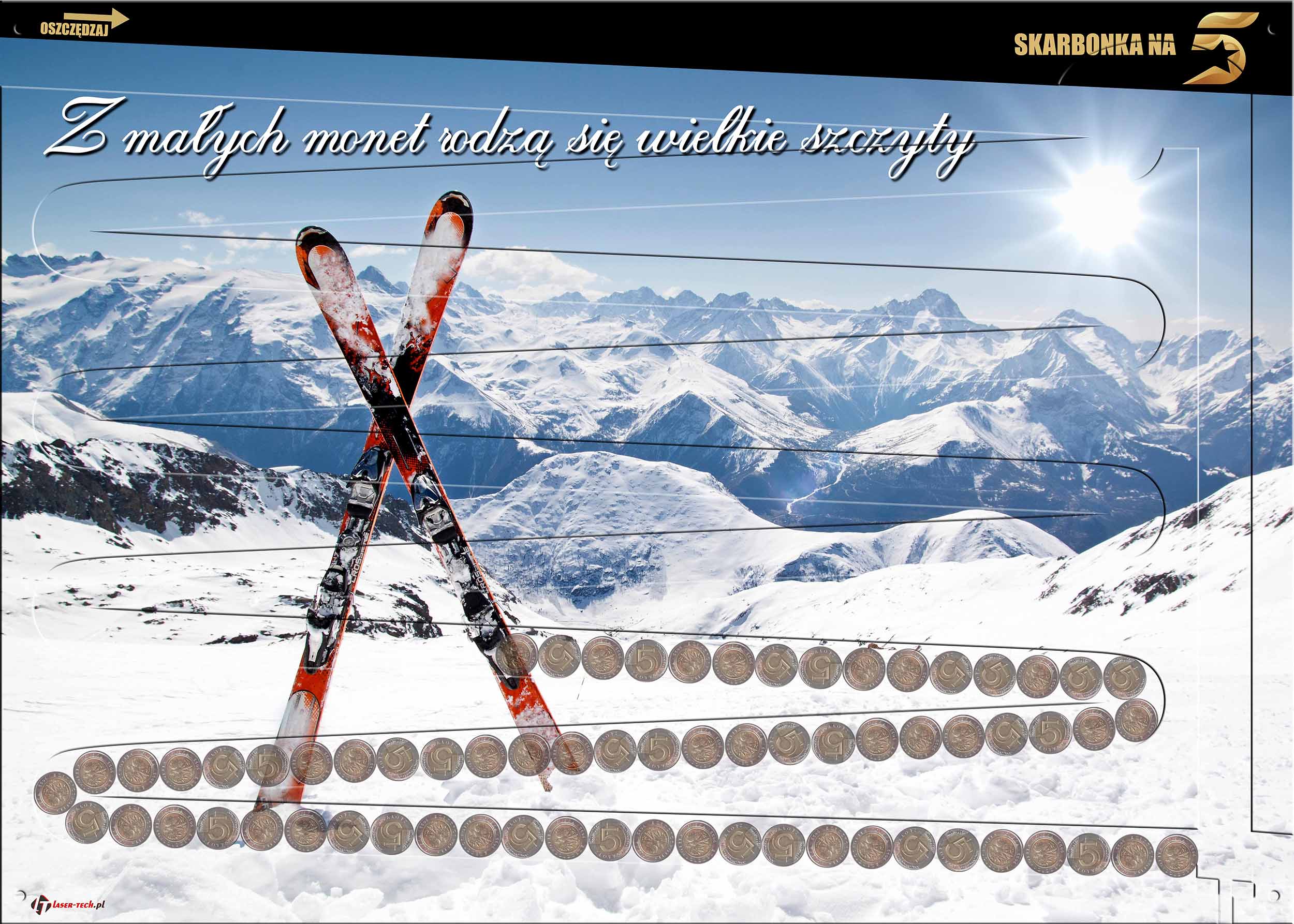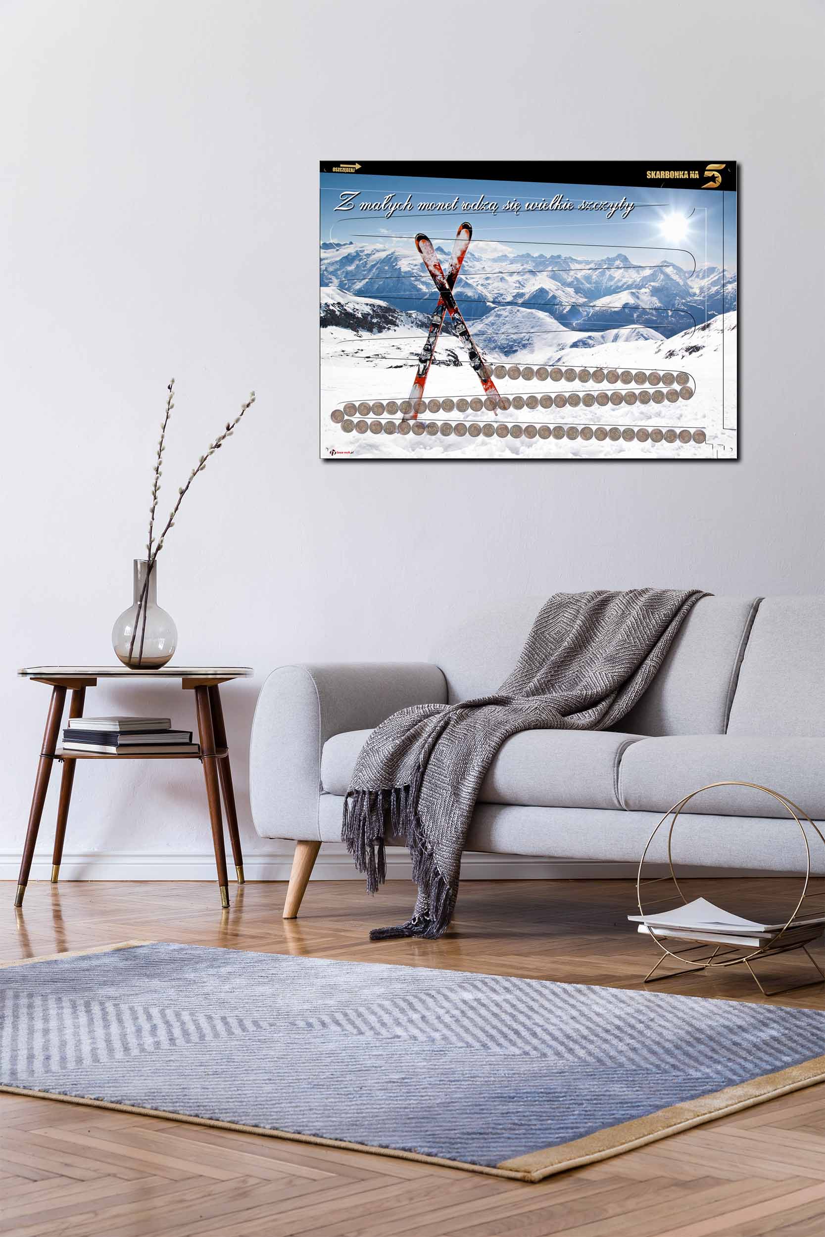 SKARBONKA NA 5 zł - XXL ścienna 70x50 cm NARTY - 1000 zł